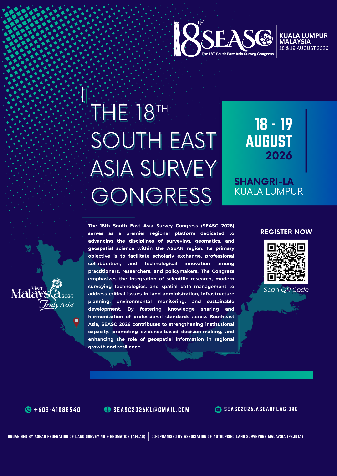 18th South East Asia Survey Congress, organised by Association of Authorised Land Surveyors Malaysia (PEJUTA). Supported by FIG.