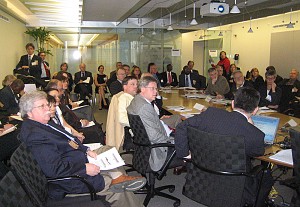 Panel at the Closing Session: Joan Kagwanja, Economic Affairs Officer, UN-ECA, chair of the closing session (left), Paul van der Molen, the Netherlands, Clarissa Augustinus, UN-HABITAT, Cheryl Morden, IFAD, Jolyne Sanjak, MCC, Helge Onsrud, Norway and Alain Durand-Lasserve, France and Paul Munro-Faure, FAO.