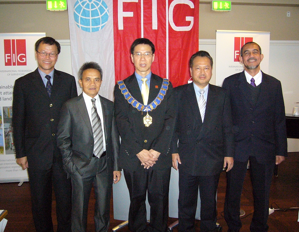 The formal Handover Ceremony between the current and incoming FIG Councils and Commission chairs took place at the FIG Headquarters in the IDA Building in Copenhagen 26 November 2010. At the Handover Ceremony President Stig Enemark handed over the President's Chain of Office to the incoming President CheeHai Teo from Malaysia. Mr Teo was elected as the President at the FIG Congress in Sydney earlier this year. President Teo together with his Council, new Commission chairs and other officers will now take over the responsibility of FIG for the next four years.
