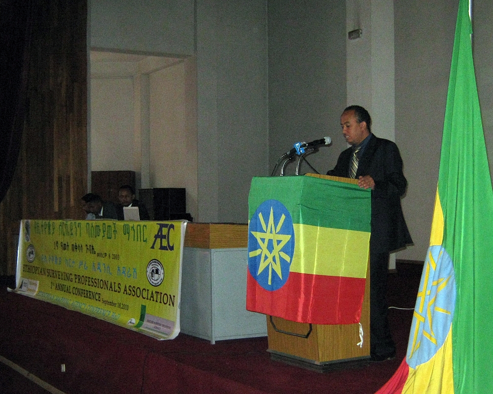 The First Annual National Conference of Ethiopian Surveying Professionals Association (ESPA) was held at the Ethiopian Mapping Agency 18 September 2010. The conference attracted several hundred participants from all over the country. It was the most historic moment and important event in the ESPA’s activities and surveyors of Ethiopia as a whole. Participants represented national government and non-governmental organizations in surveying disciplines, representatives of stake holder organizations, and ESPA’s regional representatives.