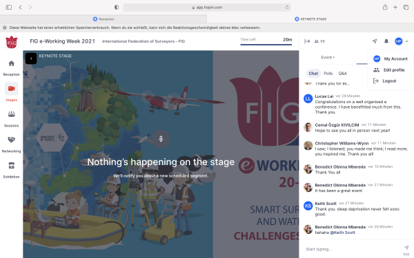 It was important for FIG and the Dutch local organisers to not "just" organise some sessions - but instead give a full conference feeling and to feel part of the surveying community. This spirit is however not that easy to create - especially online.