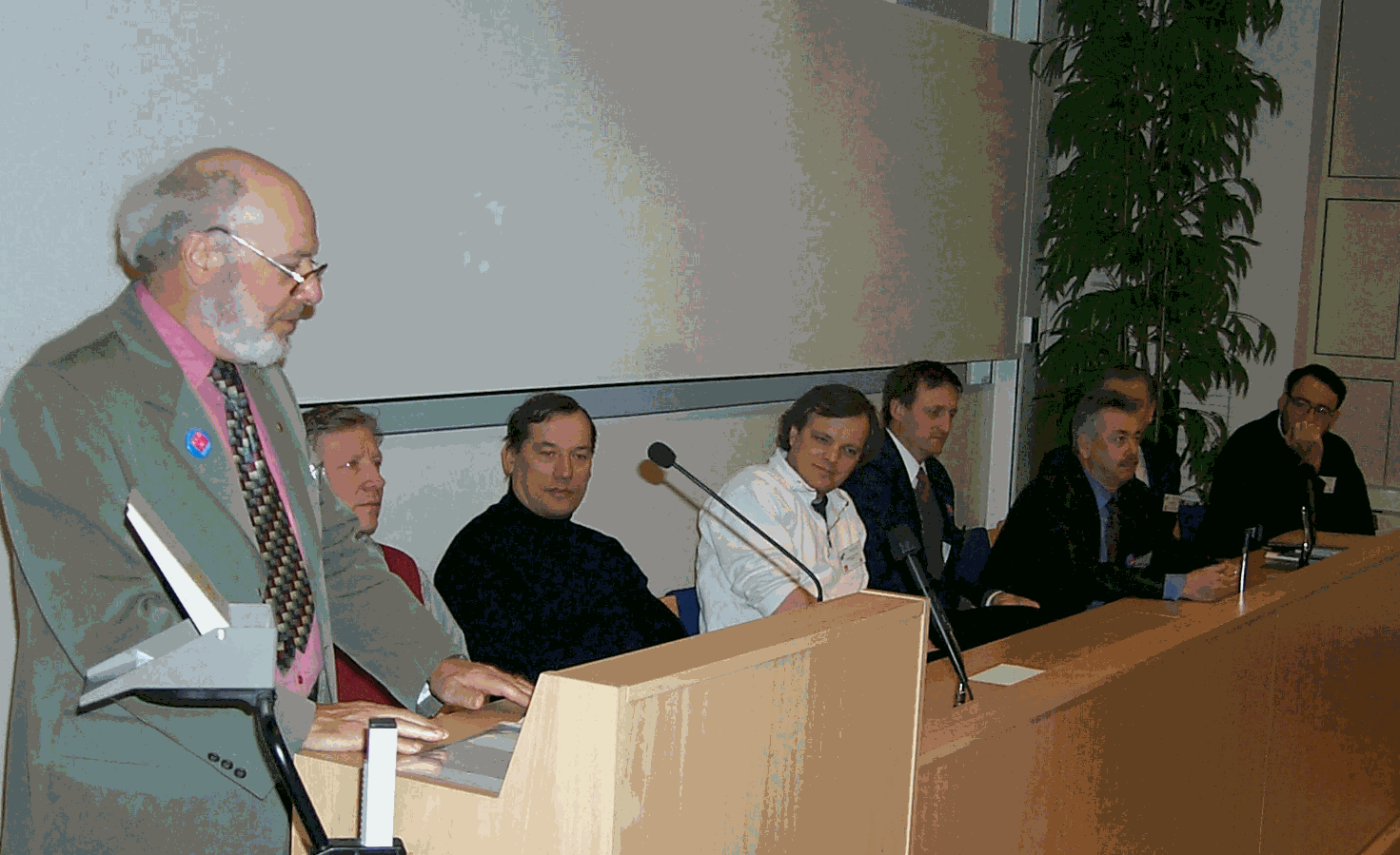 JM Becker (chair FIG-C5), Kl. P. Schwarz (IAG), H. Ingensand (WG-52), S. S. Villadsen (Denmark), M. Kasser (WG5.2), H. Heister (WG5.2), J. Kääriäinen (Finland) and M. Higgins (v.chair FIG C5)