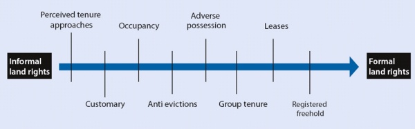 UN-HABITAT proposed the continuum of land rights approach in 2003 and this was further developed and adopted by the Global Land Tool Network partners. An example of the continuum is given below (Figure 2.)