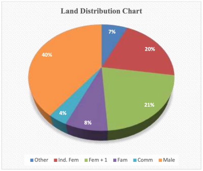 Results from the case study indicated that gender disparity in land tenure does exist to the extent where individual female land owners owned less than fifty percent of the number of parcels of land that individual male land owners held.  It was noted that the statistic did not account for scale and culture differences and considerable additional information was required to fully elaborate on the statistic as it provided only limited information on the complex situation.