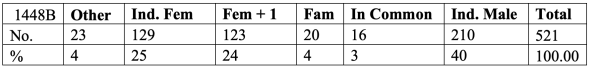 From the selected blocks in the urban/peri-urban area of Babonneau, listed as 1446B, 1448B, 1646B 1647B, 1648B, 1846B, 1848B, 1849B, the parcel owners were determined to be one of the categories of: individual female, female plus one other, parcels in common, family land, male, or other, where the owner was some other entity or corporation. These terms were therefore defined as: