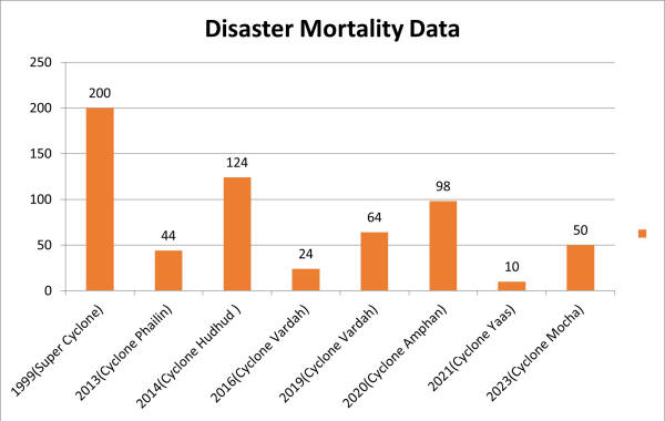 Based on the above maps, the state of Odisha implemented measures and developed infrastructure accordingly. The results of these efforts have been observed in a decreasing trend, as outlined below.
