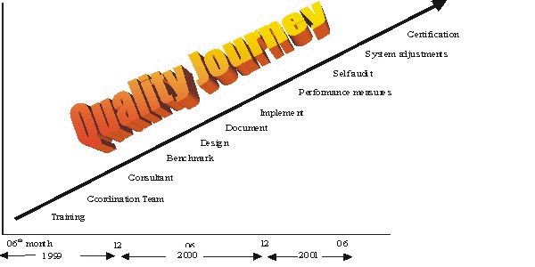 A core CHS team was organized with representatives from each of the five offices across the country. Training and communication initiatives were the first operational objectives. Coordination team members and senior management had in-depth training on the ISO 9000 quality management concepts. Benchmarking, or Gap Analysis, has been completed in each Region to establish strengths and pin point opportunities for areas of improvement. A secondary benefit of this work is an organizational snapshot, hence benchmark, that will aid in assessing the benefits of ISO 9001 implementation at a future date. The design phase of the project is just beginning. This should provide the necessary framework within which the documentation and the performance indicators can be assembled.